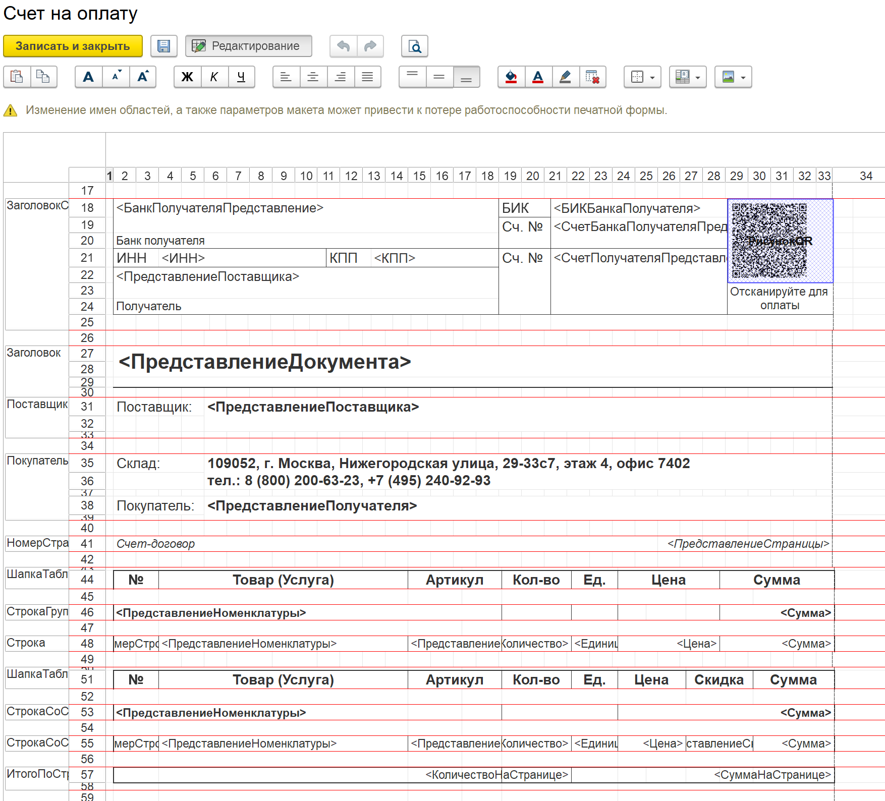 Требуется доработка печатной формы Счет на оплату в сервисе 1cfresh конф УНФ 3.0