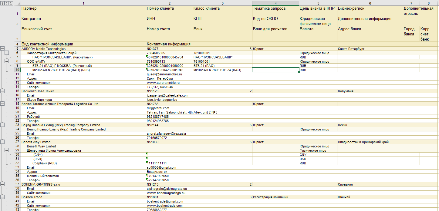 1. Контрагентов (колонки Партнер/Контрагент, ИНН, КПП).