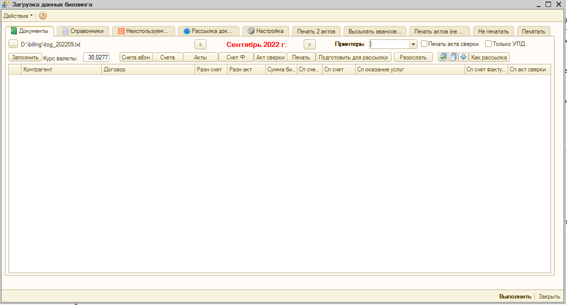 1) формирование закрывающих документов на основании текстового файла с разделителями: