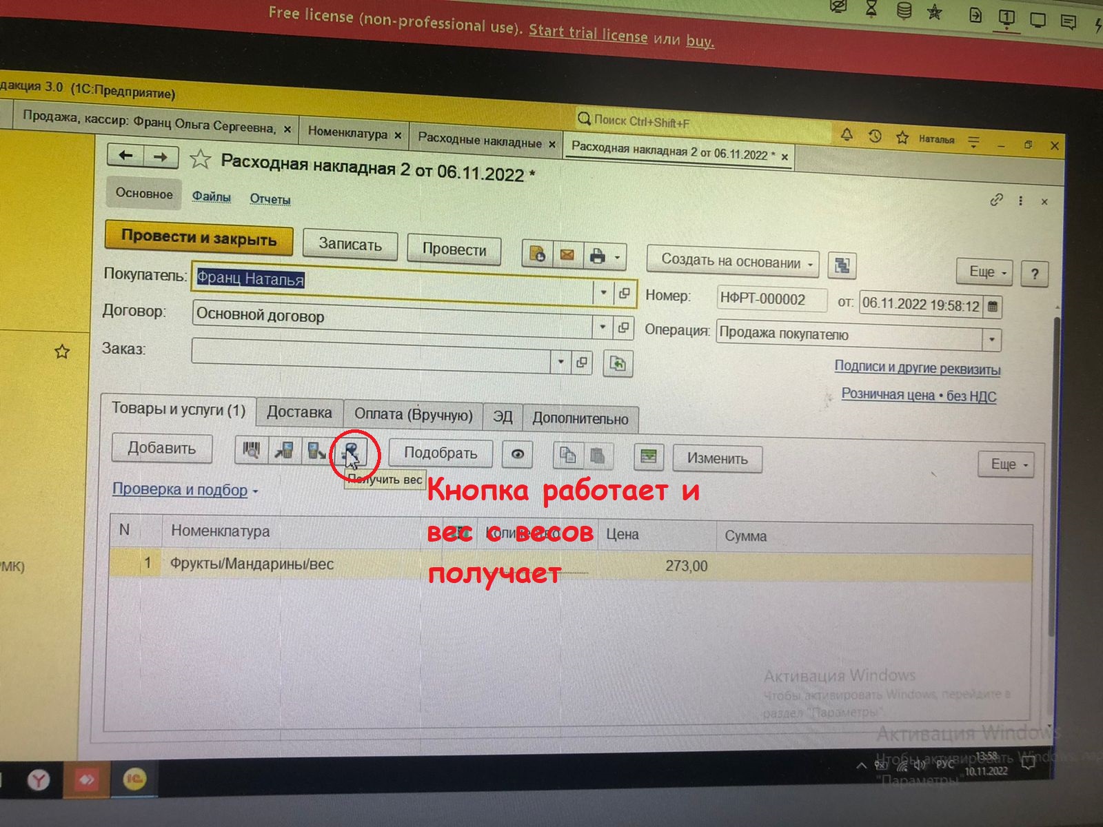 Добрый день. Не могу настроить весы, чтобы была активна кнопка в РМК. Делаю тест подключения к весам , тест проходит успешно. Захожу в реализацию товара нажимаю на вес, в количестве вес встает с весов и все работает. Но когда перехожу в рабочее место кассира кнопка не активна.