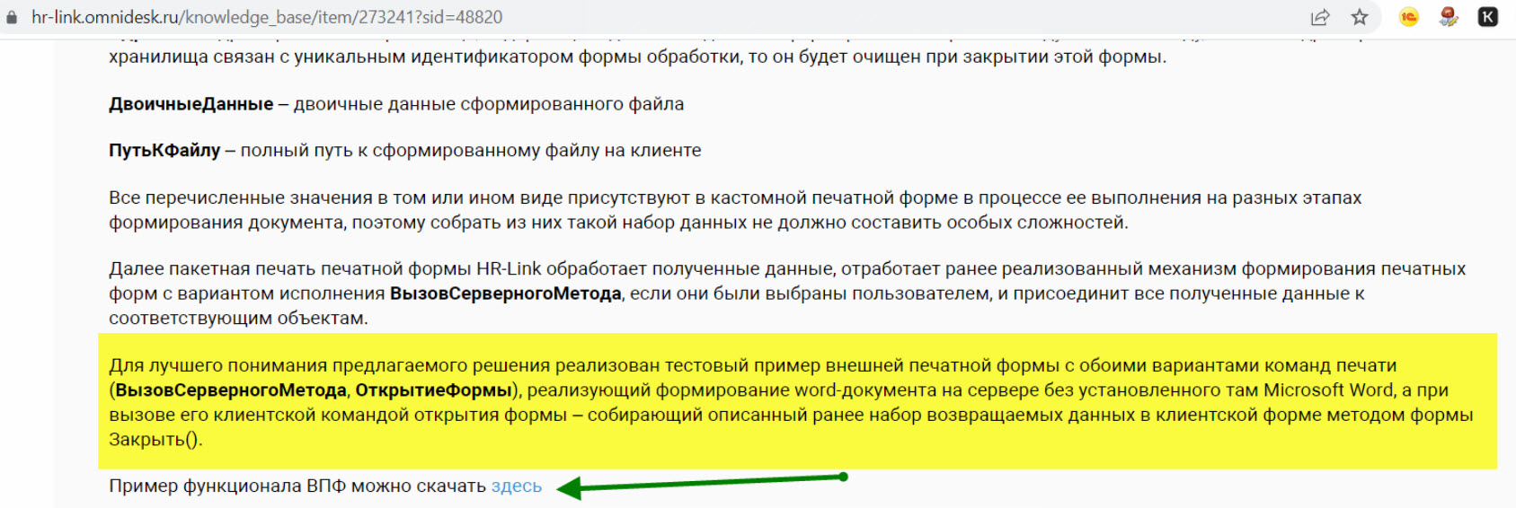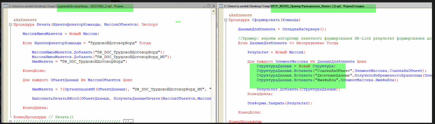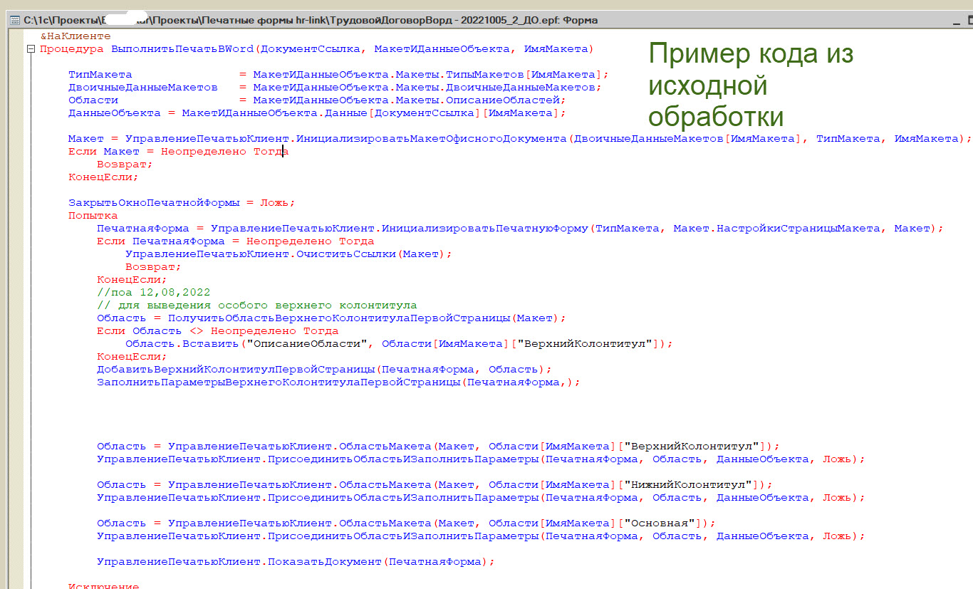 Суть вопроса: Есть компания HR-Link, который занимается электронным кадровым документообротом. Суть в том, что кадровые документы (печатные формы) из 1С попадают в HR-Link. Для этого HR-Link поставляет свою внешнюю обработку, которая отправляет себе печатные формы из документа. Это все хорошо работает с типовыми печатными формами. Чтобы HR-Link мог отправить кастомные (наши) печатные формы, нужно в алгоритм наших печатных форм внести доработки.