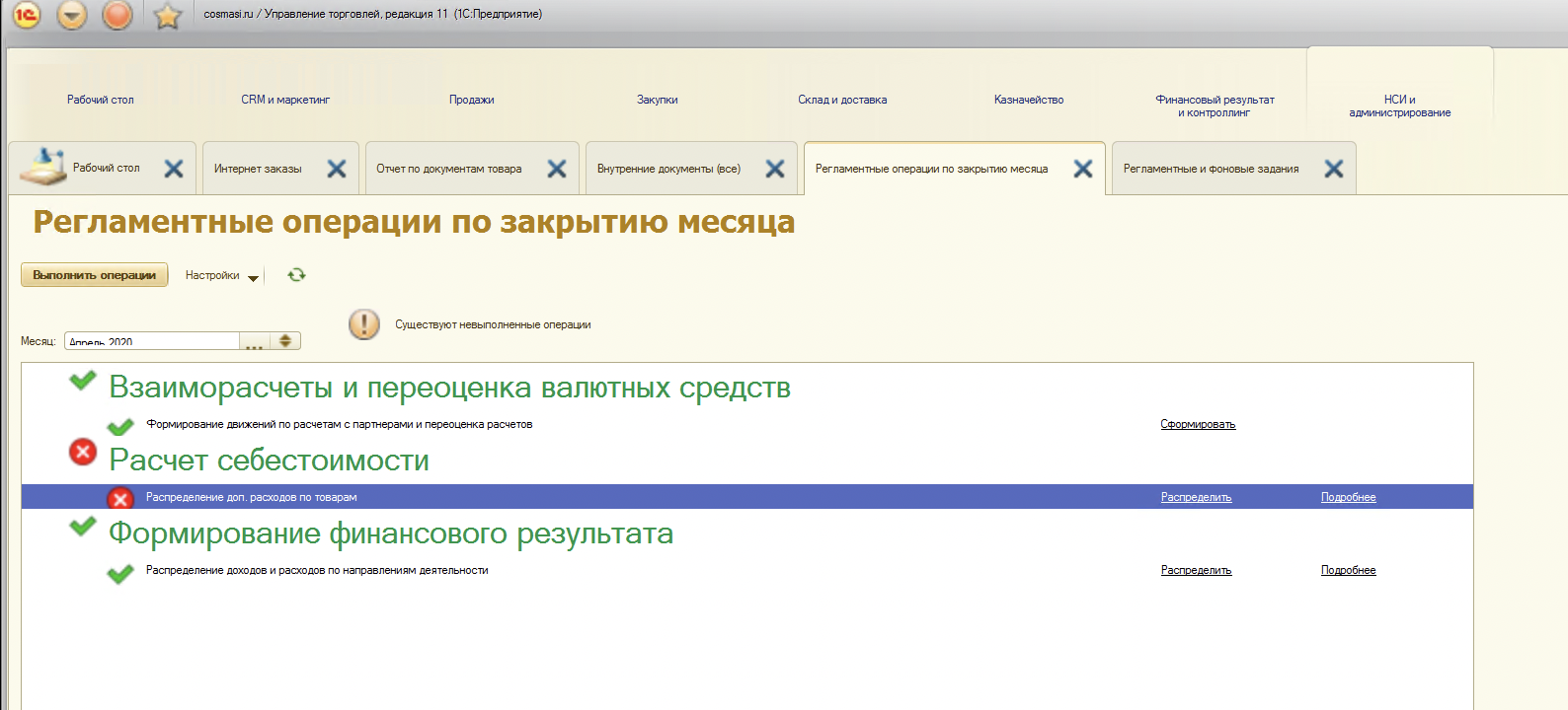 В других месяцах появились ошибки типа: Обнаружены возвращенные от клиента товары, отсутствующие в документе реализации организации "НИККОМ ООО":