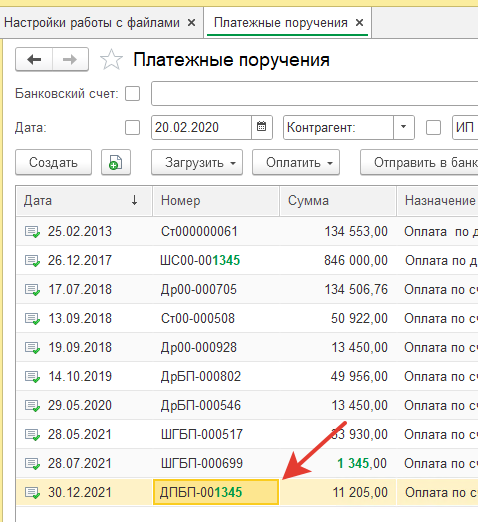 Соответственно, обработка проверяет всю папку, ищет по номеру без префикса скан и присоединяет к документу "Платежное поручение".