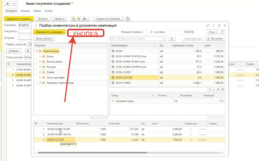 То есть, пользователь открывает подбор товаров. Отбирает нужные ему товары и нажимает на новосозданную кнопку "создать товар". В номенклатуру добавляется новый товар с наименованием из выбранных товаров. Например: пользователь выбрал товары (стекло белое, рамка, ручка) и когда нажал на кнопку "создать товар", в номенклатуру добавился товар с наименованием "стекло белое - рамка - ручка". Так же, в эту ново созданную номенклатуру, в спецификации должны попасть эти выбранные товары (стекло белое, рамка, ручка).