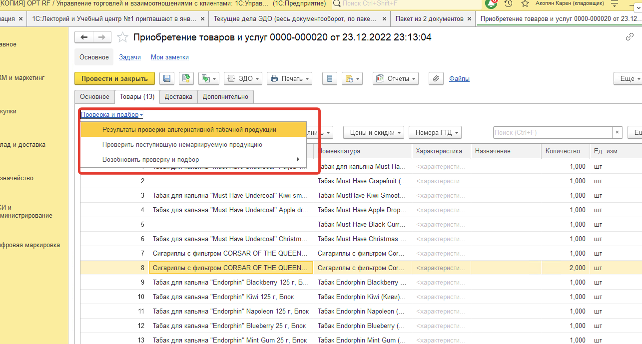 Нужна помощь специалиста имеющего опыт в работе в 1С с маркируемой продукцией (желательно табачная продукция)