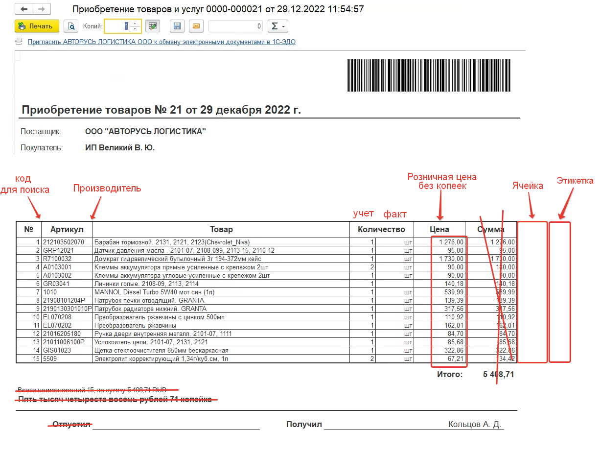Добавить колонки в печатные формы: