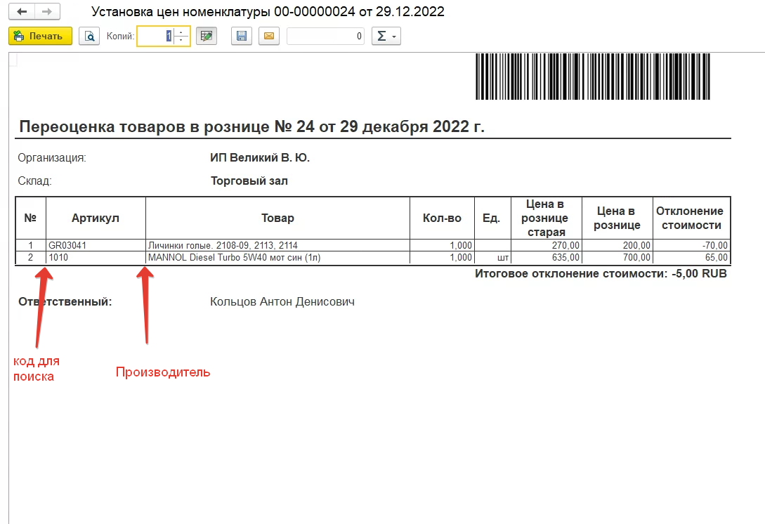 2. Переоценка в рознице