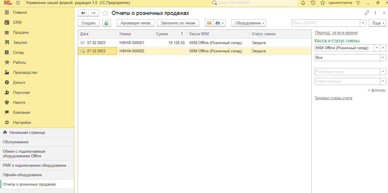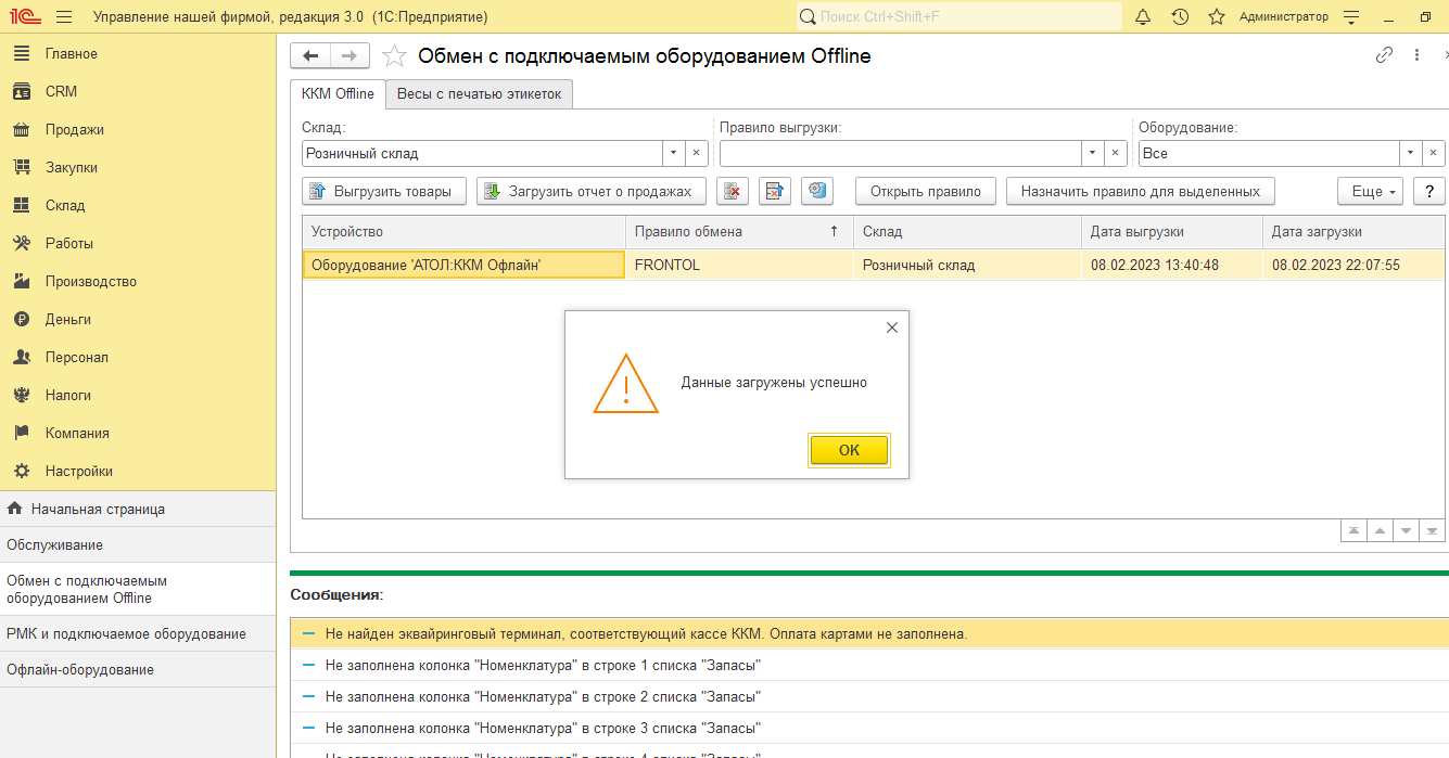 УНФ 3.0.2.193 пустая (!). Загрузка всех продаж за период (полгода) ИЗ Frontol 5.