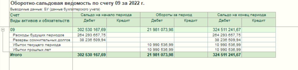 Программа дает проводку 09-68.04.2 по субконто "Убытки прошлых лет". Ее не должно быть (см. скриншот).