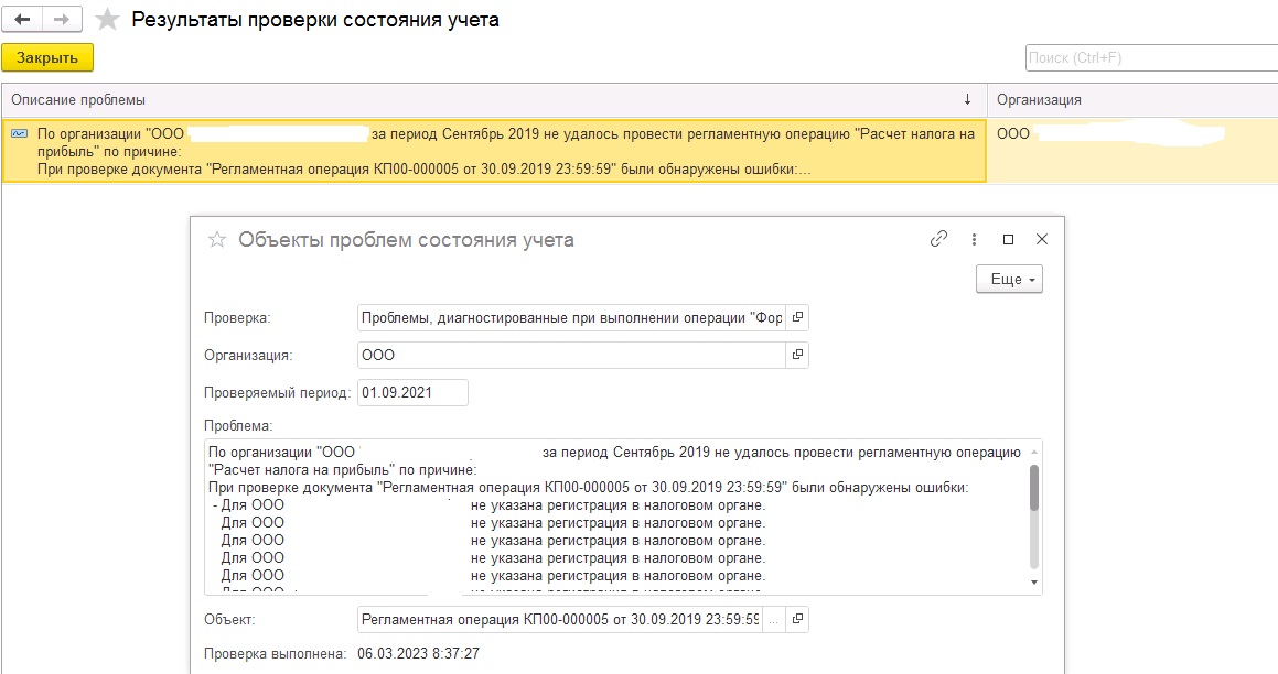 1С:Комплексная автоматизация 2 (2.5.8.402). При закрытии месяца при формировании финансового результата ошибка: По организации "ООО ... за период Сентябрь 2019 не удалось провести регламентную операцию "Расчет налога на прибыль" по причине:
