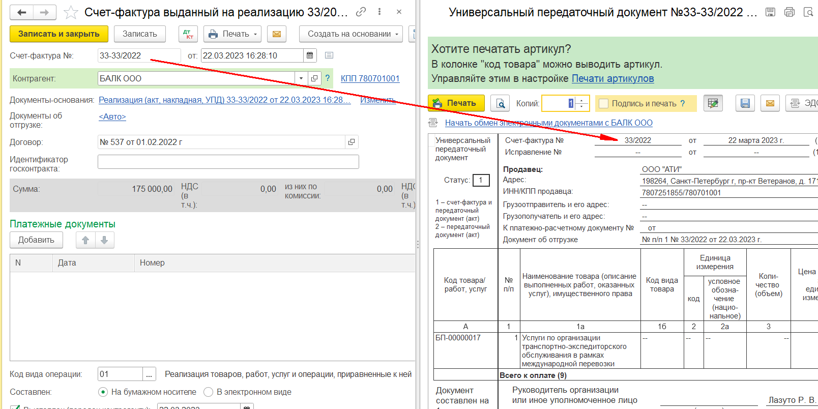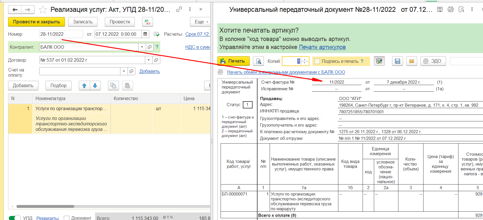 Нужно, чтобы поле "номер" документа отображался в Печатных формах так, как он есть. Сейчас выводится в печатных формах обрезанный номер. (без префикса).