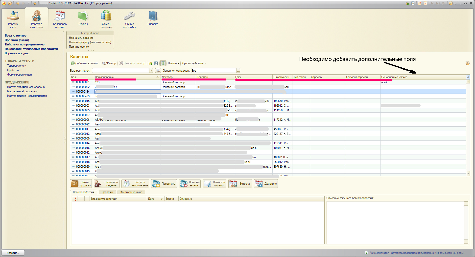 Необходимо внести небольшие изменения в 1С CRM Стандарт: требуется добавить дополнительные поля(реквизиты) в форму списка (названия столбцов в базе клиентов). Изображение приложено.