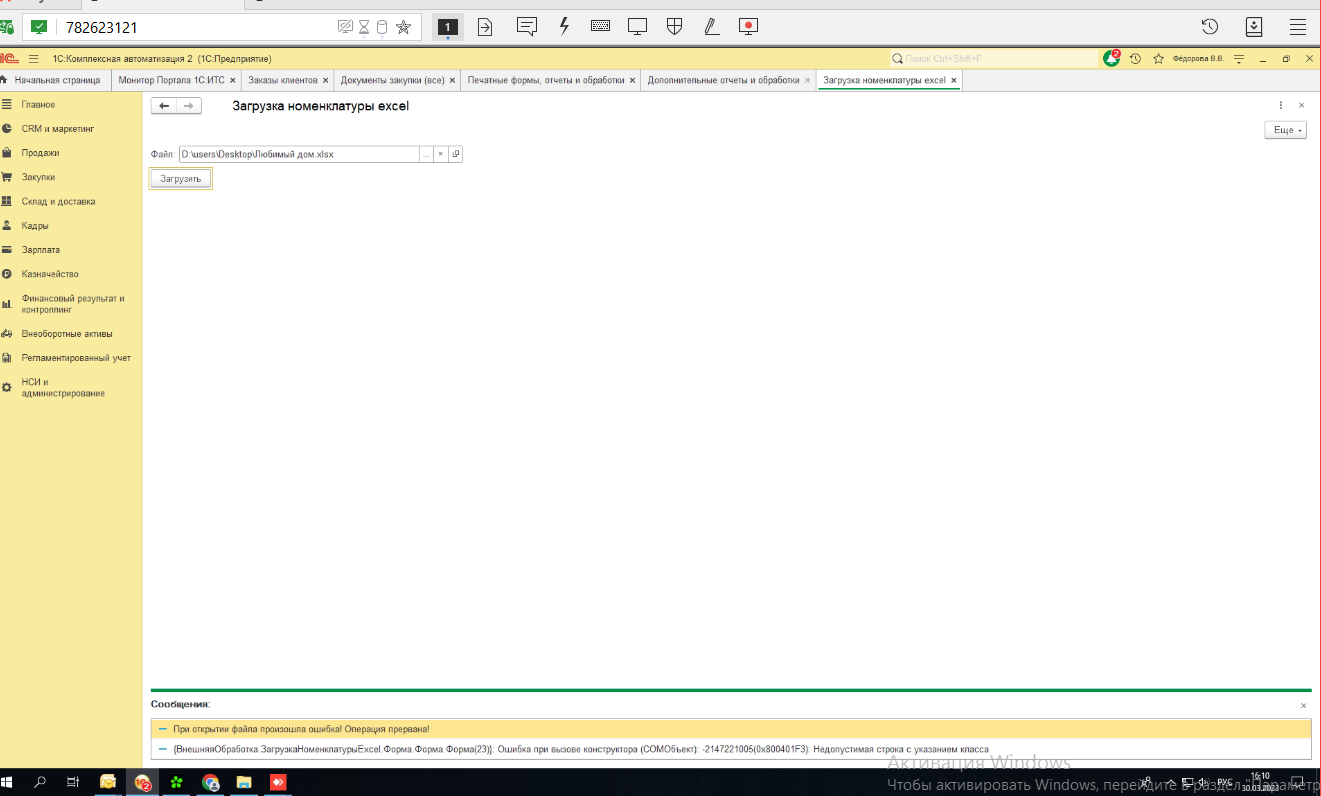 Исправить ошибку загрузки из эксель на клиенте КА 2.5