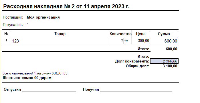 Нужно добавить новую строку "Общий долг", который показывает общий долг контрагента в накладном. Пример загружу ниже.