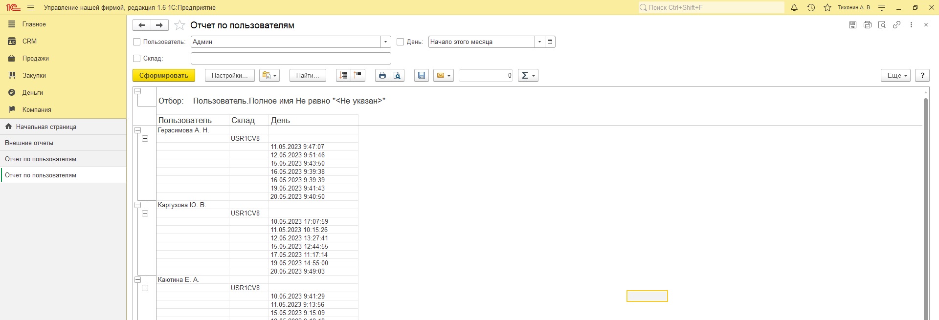 На данный момент отчет не фиксирует пользователя сервера, не работают фильтра.