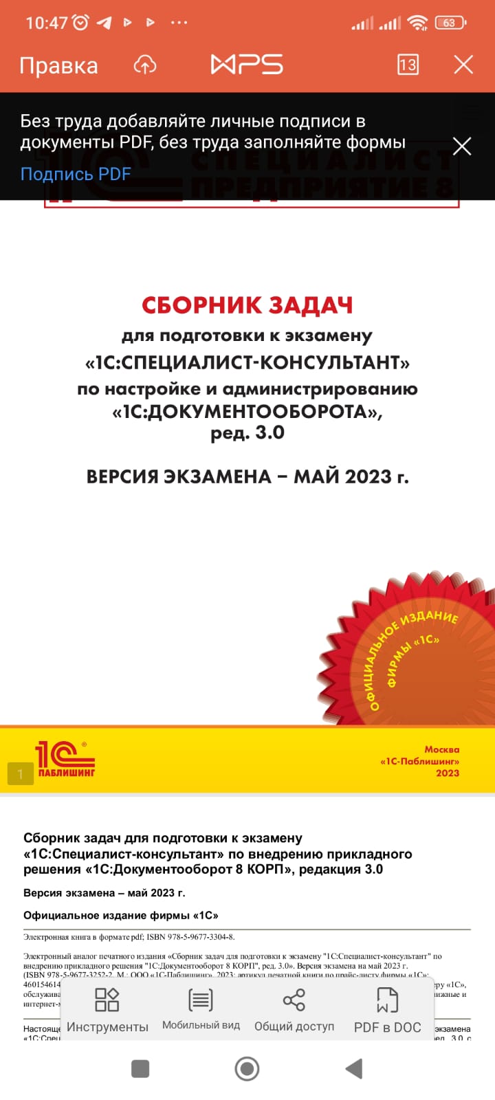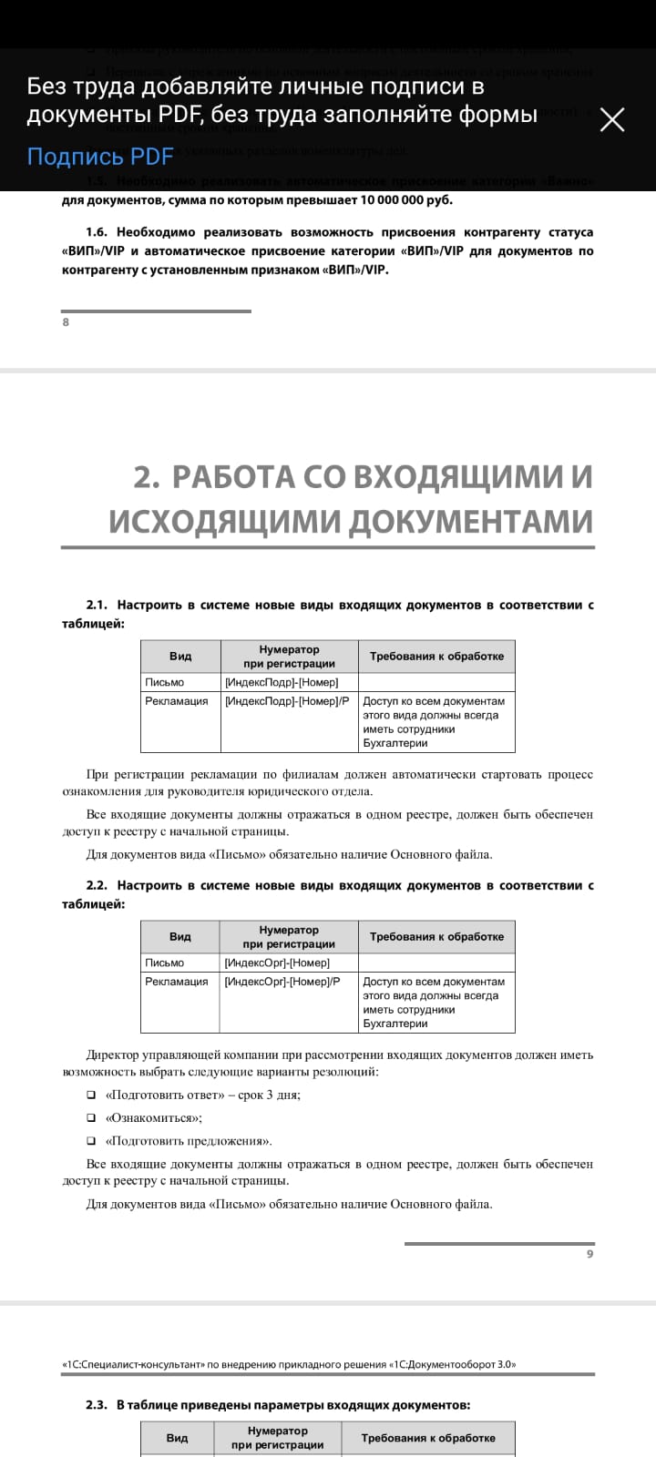 Выполнить задачи из сборника по 1С Документооборот 3.0