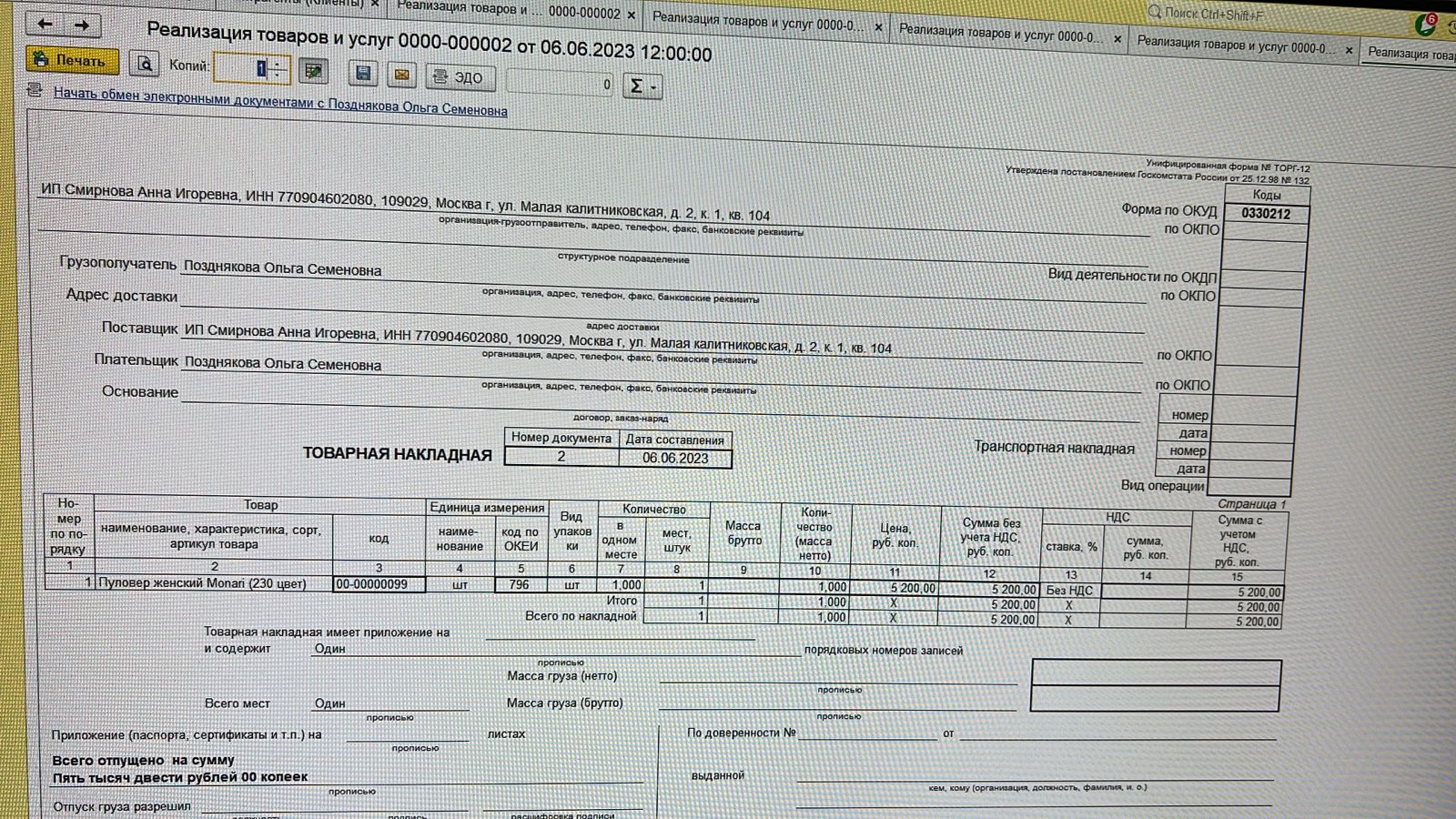 Артикул, Наименование, Цвет, Размер, Количество, Цена, Сумма.