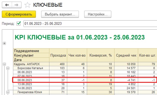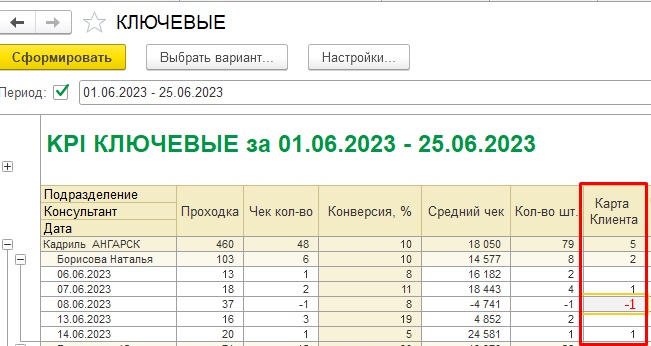 Если Клиент совершил две покупки, а после принес возврат, то он должен минусоваться из новых Клиентов в текущем периоде и влючоваться в будущем, когда вновь совершит покупку. Это должно быть отражено в отчерет "Ключевые показатели" в ячейке следующим образом "-1" (приложение 2)