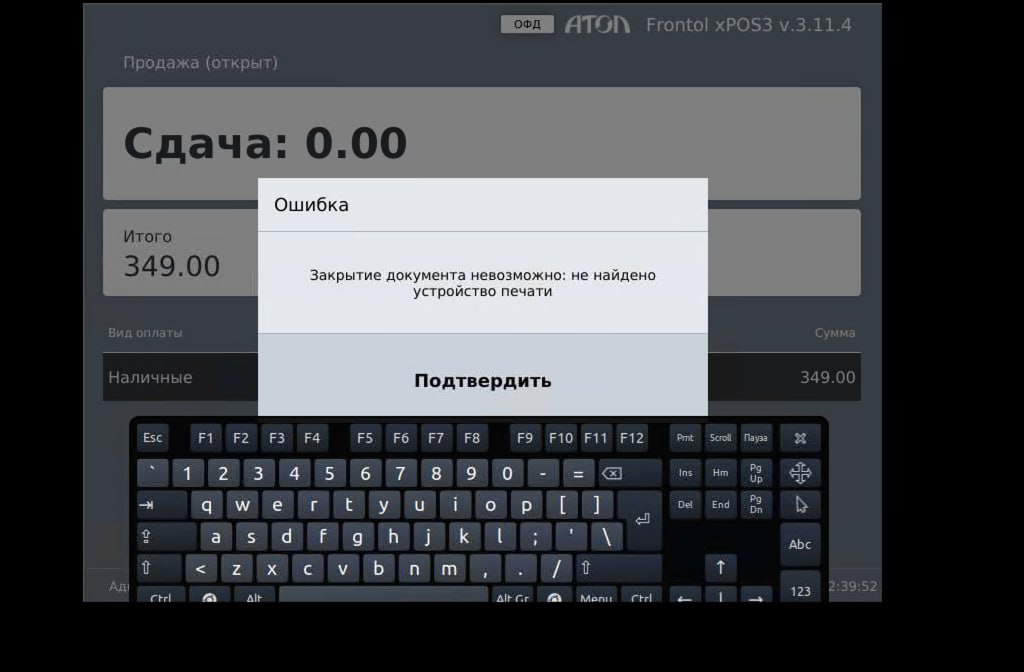 cейчас при попытке пробить чек выходит следующая ошибка(на скриншоте), в настройках ККТ выставлено состояние эмулятор