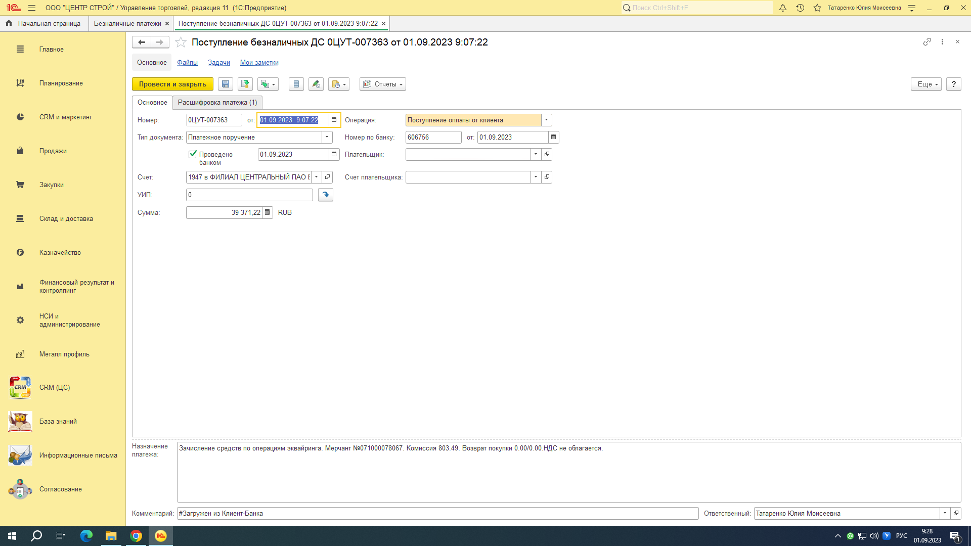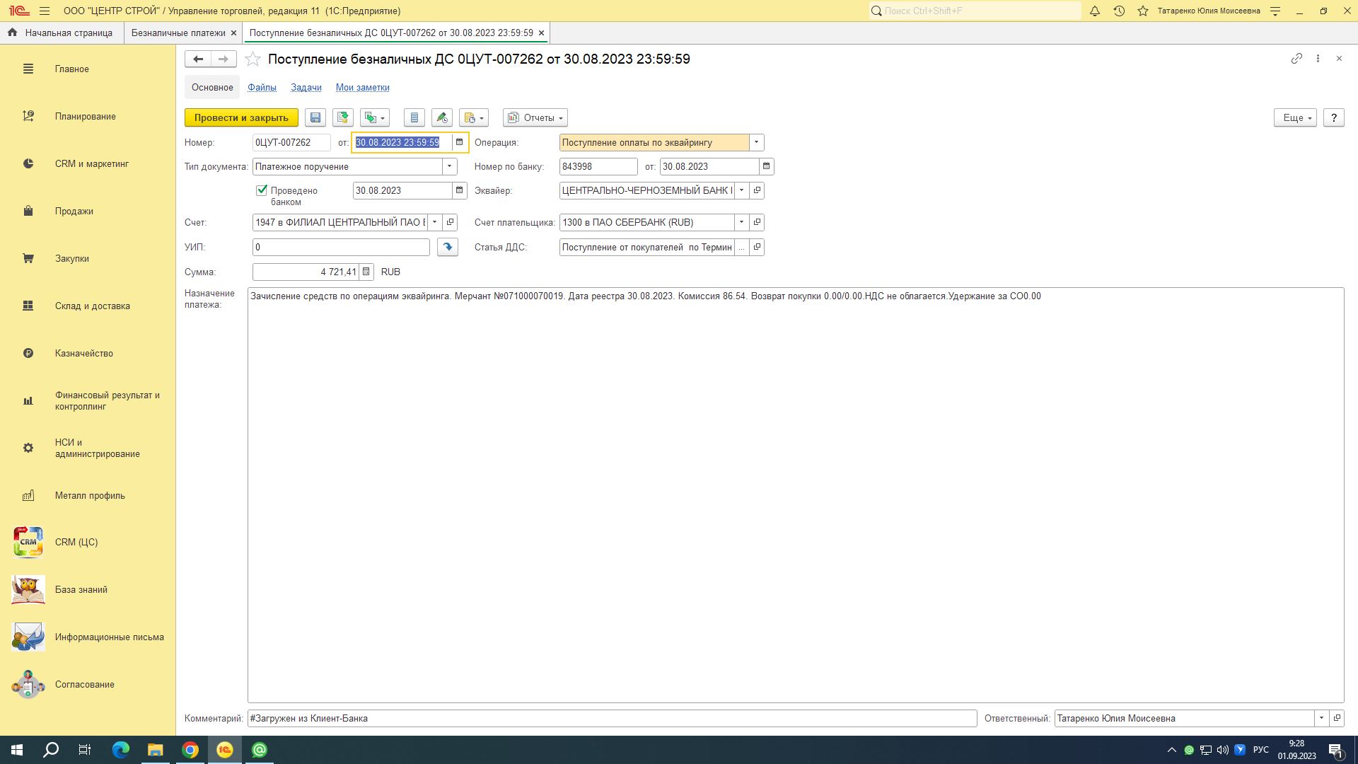 2 дня перестали корректно заполнятся реквизиты поступления по эквайринговой операции. В самой базе изменений не было. Нужно поправить загрузку, чтобы реквизиты заполнялись, как раньше. (перестал корректно заполнятся реквизит "Операция", ДДС и не подтягивается банк. Буквально 2 дня такая ошибка. (1 скрин - было) , 2 скрин - стало