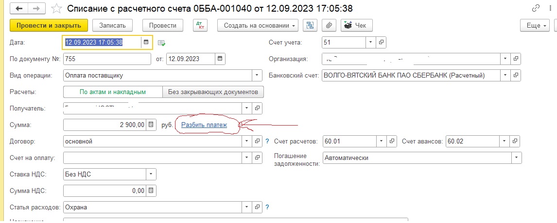 Добавить ссылку на табличную часть «Список самозанятых» с колонками / Контрагент / Сумма /. Ссылка появляется при вышеуказанных условиях (по аналогии с расшифровкой платежа). При проведении док-та проводка с общей суммой должна разделится на несколько по т.ч. «Список самозанятых». Если итог по сумме «Список самозанятых» расходится с суммой док-та не давать проводить выводить сообщение.