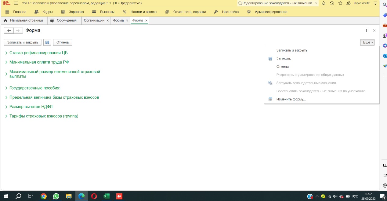 Компания изменила юридический адрес с Ярославля на Москву, соответственно и изменился МРОТ, но в программе стоит прежний Ярославский. Вкладка "Разрешить редактирование общих данных" неактивна