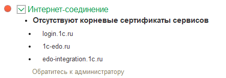 При выполнении диагностики выходит ошибка: Отсутствуют корневые сертификаты сервисов.