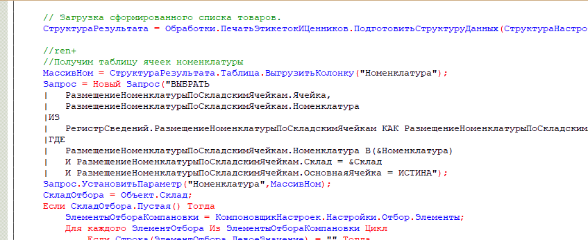 Там было настроено отображение Ячеек и Размеров в выбранном складе как в таблице так и в печати ценников