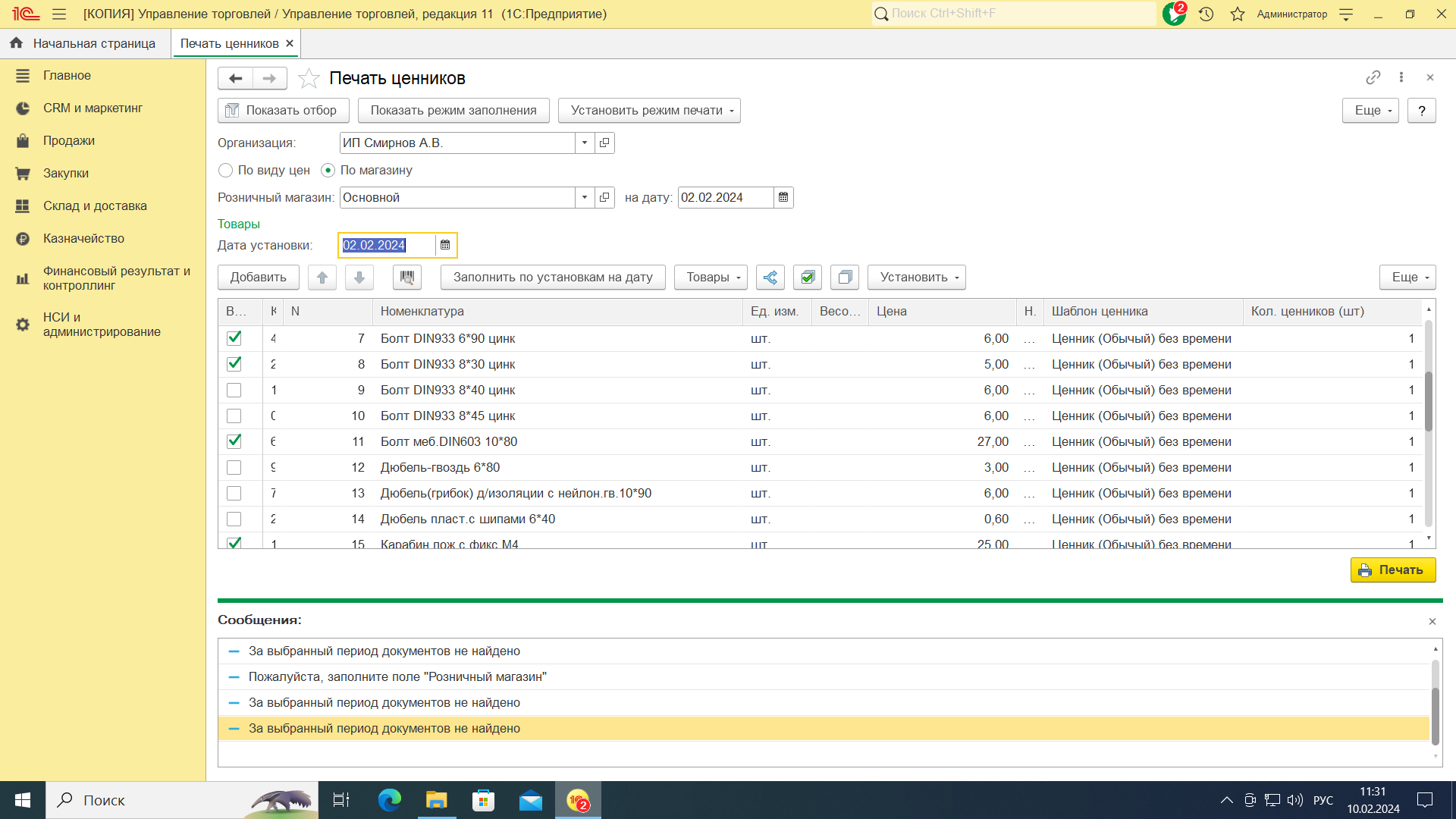 Печать ценников только на измененные цены за день.