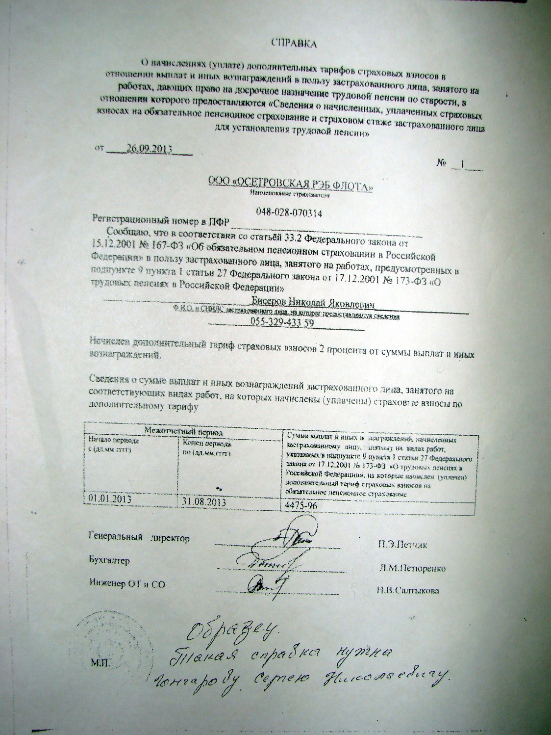 Требуется Отчет. Справка о начислении и уплате дополнительного тарифа страховых взносов на финансирование страховой части трудовой пенсии