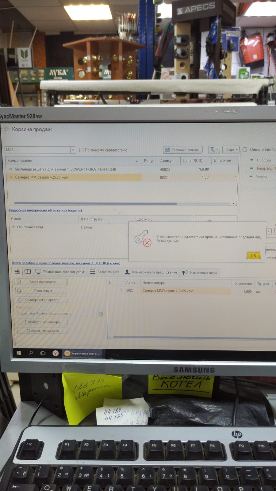 Корзина продаж на начальной странице - кнопки внизу "Заказ покупателя", "Реализация" и т.п. не работают (ошибка доступа), хотя отдельно везде можно пользоваться