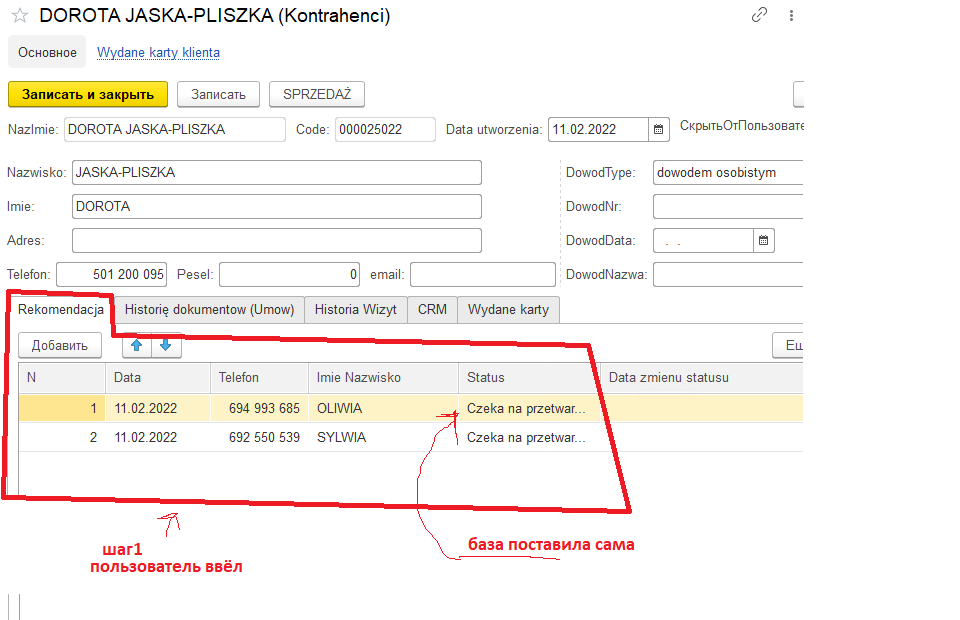 I) В Справочнике по клиенту, есть Таблица в которую заносятся номера телефонов как числа.