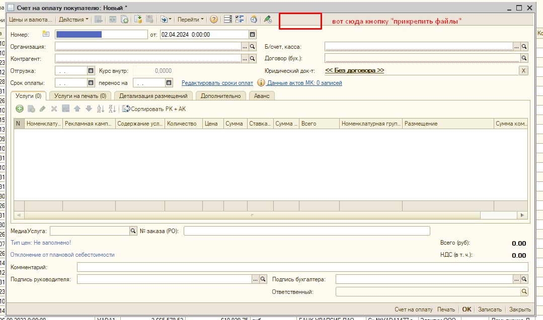 1. В базе Опер.Учета реализовать функцию присоединения файлов к документу СЧЕТ. На базе БСП (последняя версия БСП в конфигурацию установлена) (или предложить свой вариант)