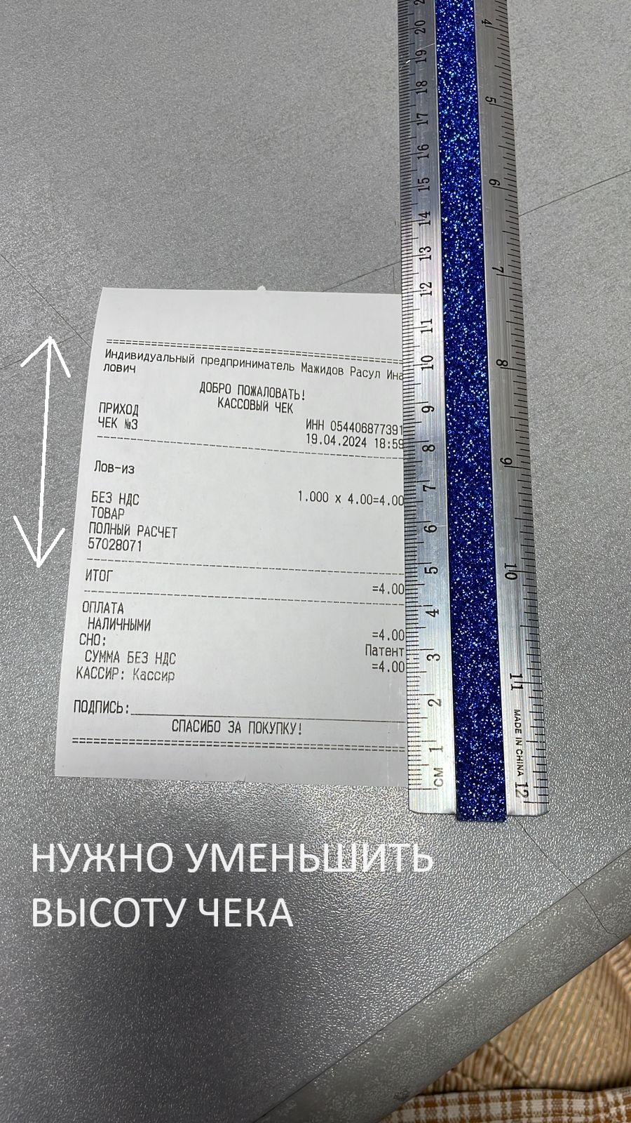 1С Розница 2.3.12.34. Шаблон чека, который выдает принтер чеков очень длинный. Нужно изменить шаблон.