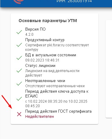 УТМ ЕГАИС не видит новый сертификат
