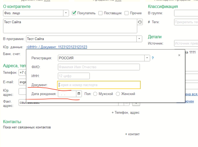 Нужно чтобы эти поля записывались у покупателя (контрагента) в 1с