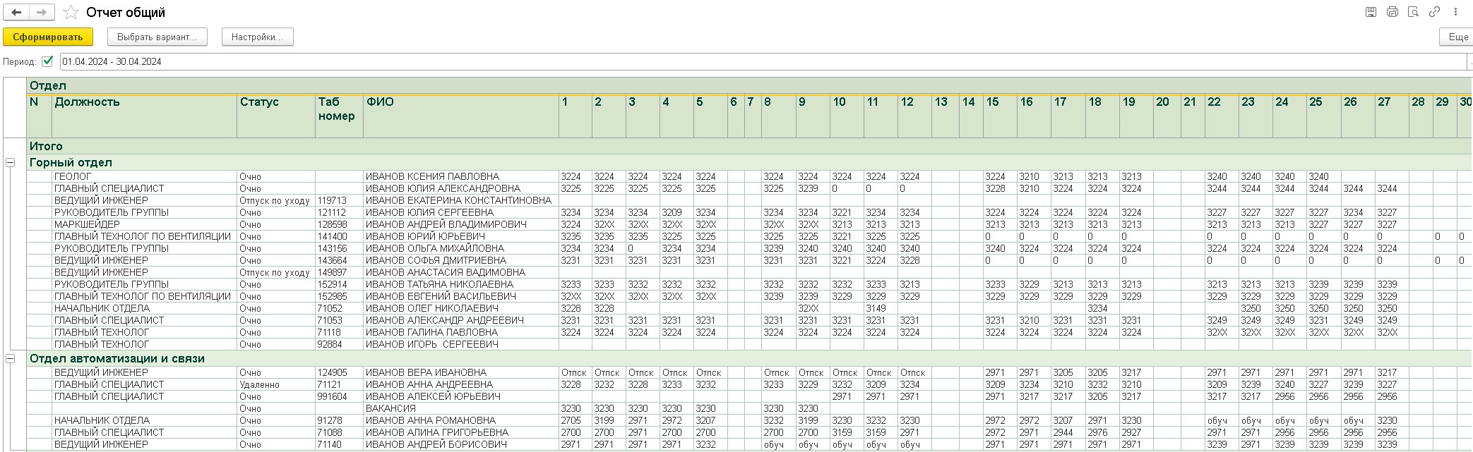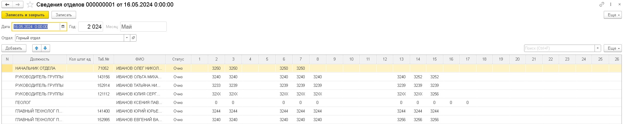 Отчет по табличной части документа выбрать количество шифров по параметру(шифр) по дате + отдел.
