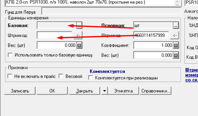 после некорректной загрузки обработкой стала выгружаться основная вместо базовой. нужно поменять единицы и перенести шк в поле базовой. встроенная установка ед не помогает.