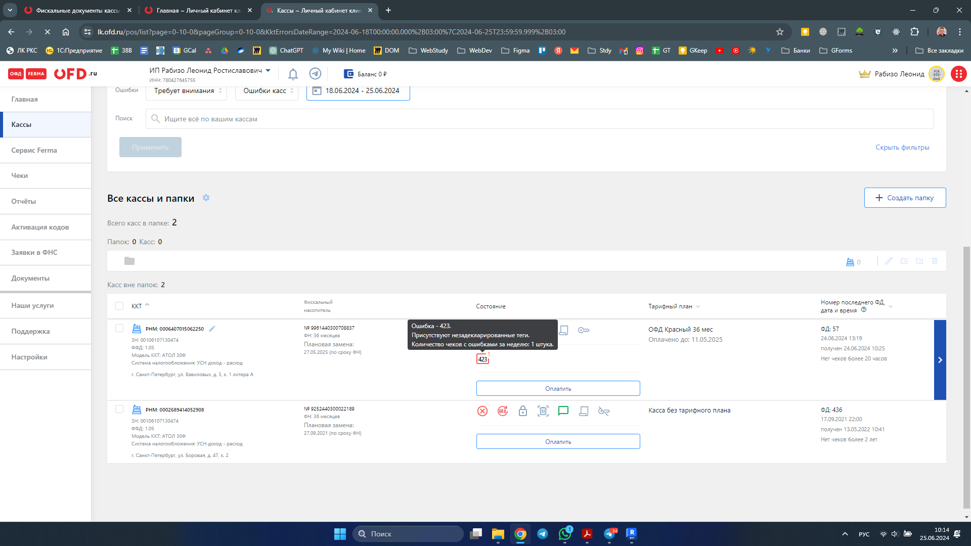 Все доступы предоставлю и в офд и к рабочему месту если надо.