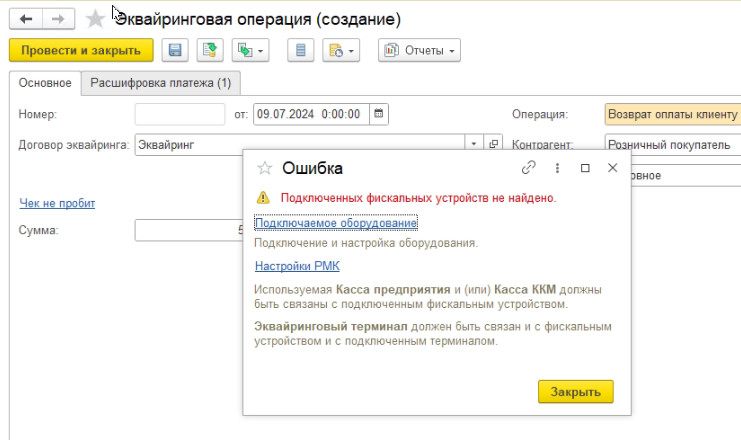 Клиент вернул товар, делается документ возврата. Но при формировании ОперацииПоПлатежнойКарте ошибка.