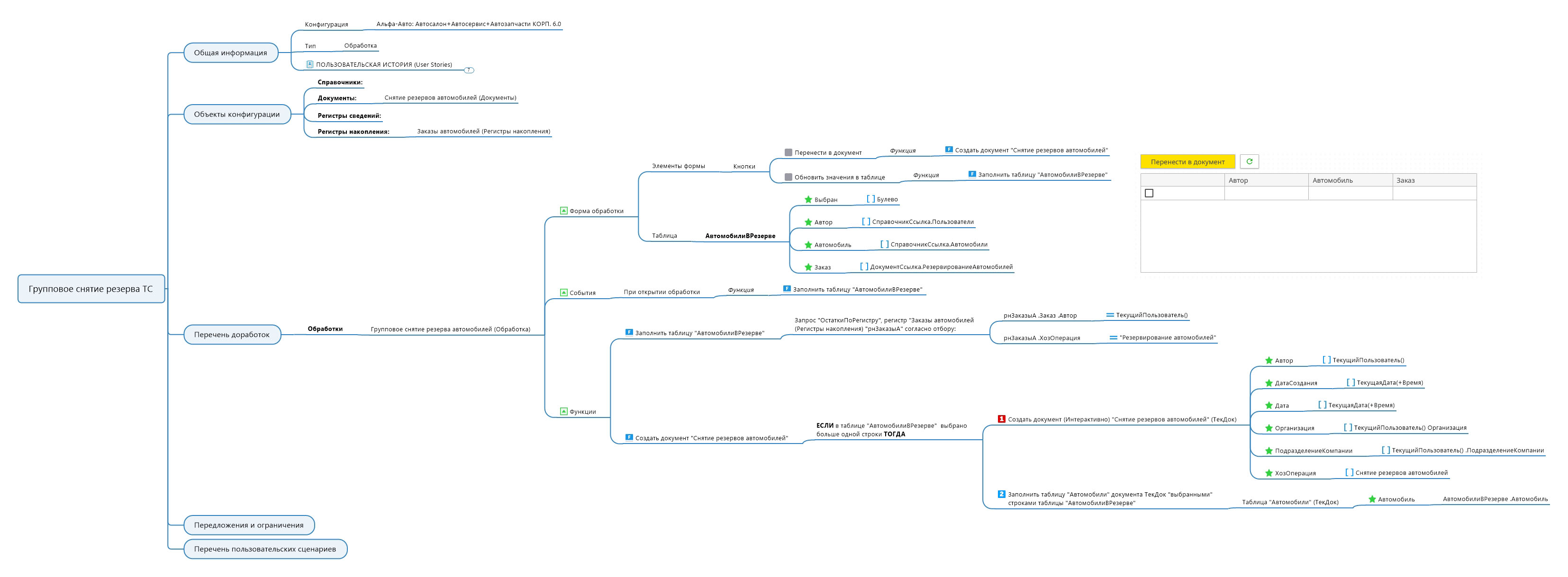 Обработка "Групповое снятие резерва ТС" конф. Альфа-Авто ред. 6.0