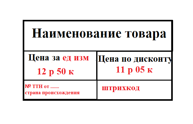 Первый вид реквизита цены - розничная цена ( на ценнике просто "Цена за") После слов "Цена за" должен стоять реквизит единицы измерения товара.
