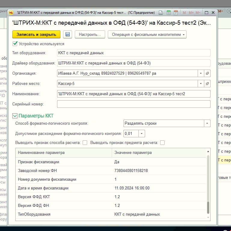 Есть старая УТ 11, есть кассы без фна, есть кассы на ффд 1.2. У касс на ффд 1.2 проблема, при создании нового торгового оборудования смена открывается нормально, касса работает, но если закрыть смену, перезапустить 1с, то смена больше не открывается, выдает что ФФД не поддерживается конфигурацией, создаю новое оборудование, смена открывается. Есть предположение что это из-за "параметров регистрации ккт", но возможно дело в другом