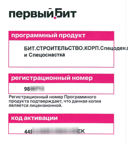 Активировать для программы "Бит.Строительство" доп. модуль "Спецодежда и...