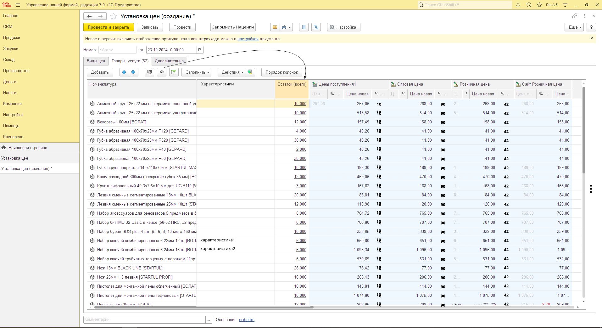 2. Модифицировать или сделать копию раздела УСТАНОВКА ЦЕН: