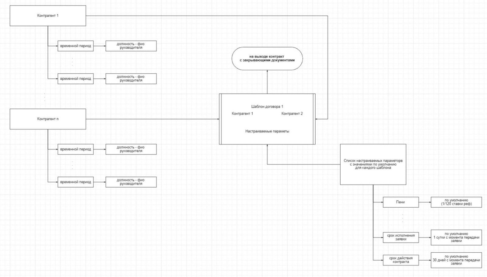 Нужно сделать возможность создания в 1С договоров с комплектом закрывающих документов (три вида комплкта). Во вложении схема.
