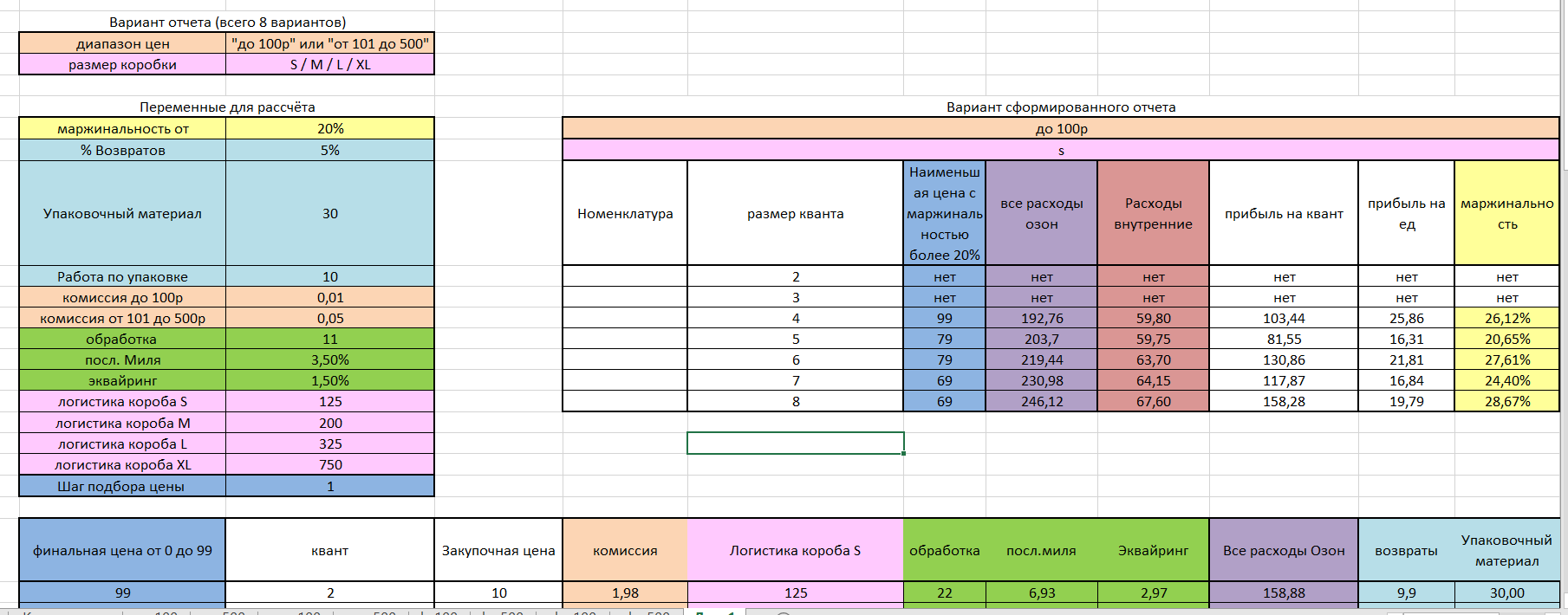 Есть подробная таблица ексель со всеми формулами для расчета и как должен выглядеть итоговый результат, скину после обсуждения и согласования всех нюансов.