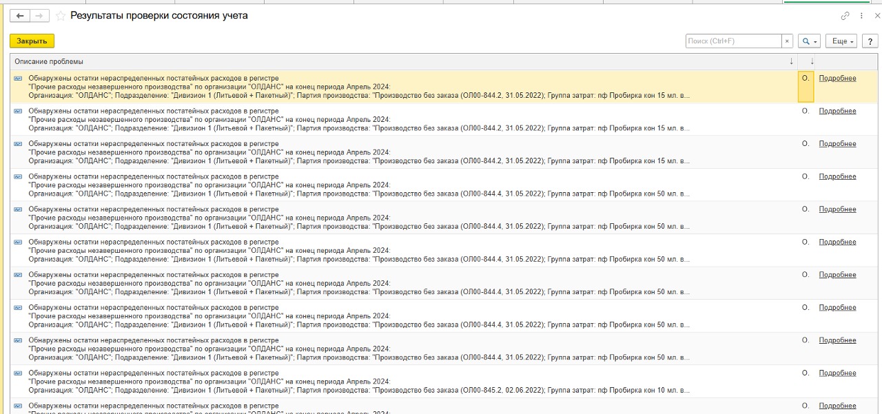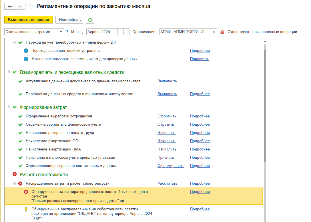 В регламентных операциях по закрытию месяца выходят ошибки об обнаружении остатков нераспределенных постатейных расходов в регистре