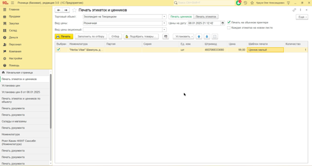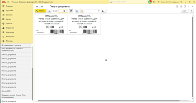 Устранить задвоение при печати ценников в 1С:Розница 3.0.10.178 Базовая
