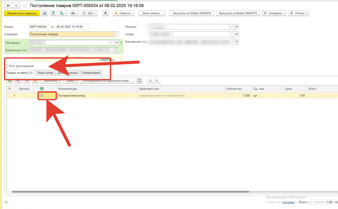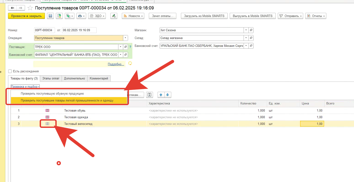 При поступлении 1 и 2 группы появляется возможность проверить поступившую продукцию по маркировкам